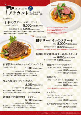レストラン・ヨーデル金谷の基本メニューです。